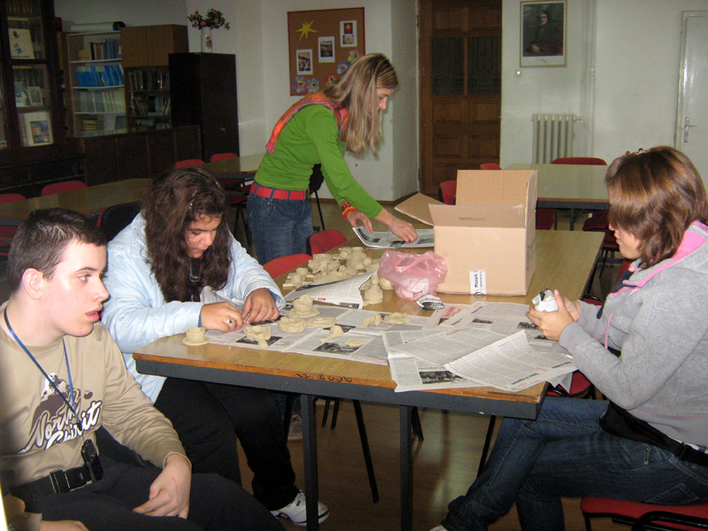 U srijedu, 11. studenoga u prostoriji naše knjižnice provedena je kreativna radionica izrade prigodnih ukrasnih predmeta od gline čiji su sudionici bili učenici 4. razreda Osnovne škole Turnić pod vodstvom svoje učiteljice Sidonije Grabar i učenici odjela učenika s teškoćama u razvoju naše Škole.
